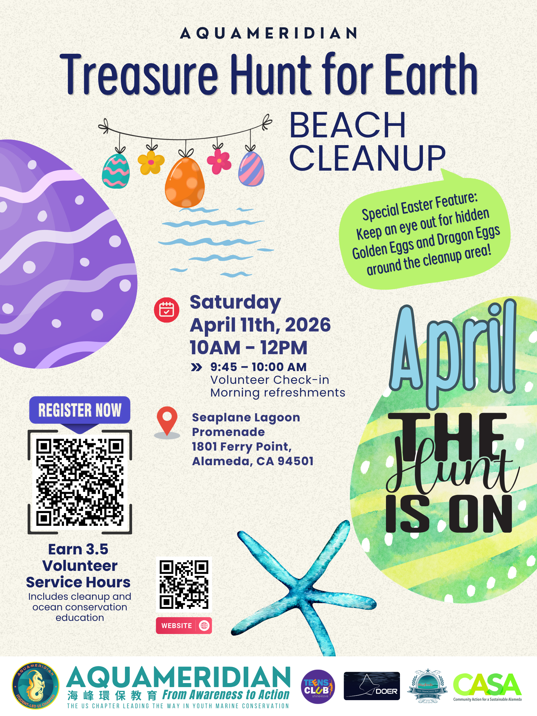 Join AquaMeridian for a fun, interactive “Easter Egg Hunt for Earth” — where we hunt not only for hidden eggs, but also for trash that impacts our ocean.